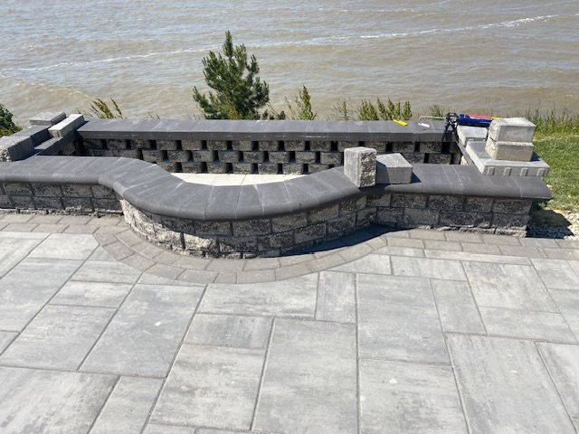 Discover the serenity of stone patios overlooking large bodies of water, with curved seating and stone pathways. Our work is about creating environments that embrace nature and provide tranquil spaces for relaxation.